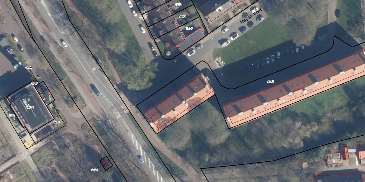 Het perceel waarop Haydnstraat 7-B staat heeft een oppervlakte van 2605 m². Dit is een zeer groot perceel. De perceeloppervlakte wordt geregistreerd door het Kadaster. Gedetailleerde informatie over de maten van dit perceel kunt u vinden in het rapport Kadastrale kaart met maatvoering van Haydnstraat 7-B.