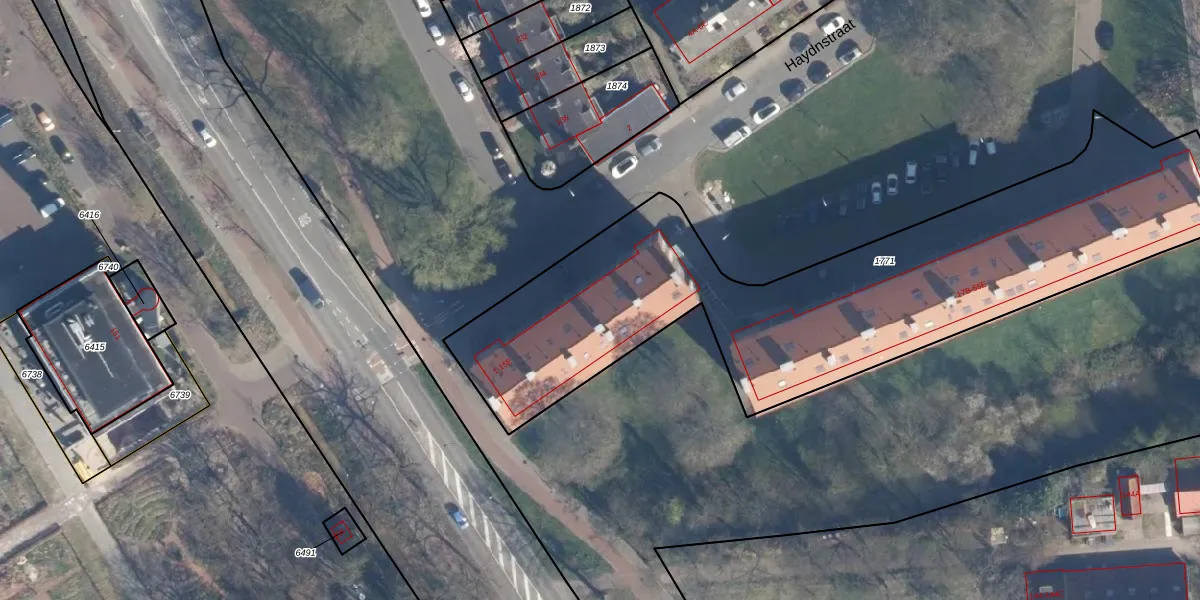 Het perceel waarop Haydnstraat 7-D staat heeft een oppervlakte van 2605 m². Dit is een zeer groot perceel. De perceeloppervlakte wordt geregistreerd door het Kadaster. Gedetailleerde informatie over de maten van dit perceel kunt u vinden in het rapport Kadastrale kaart met maatvoering van Haydnstraat 7-D.