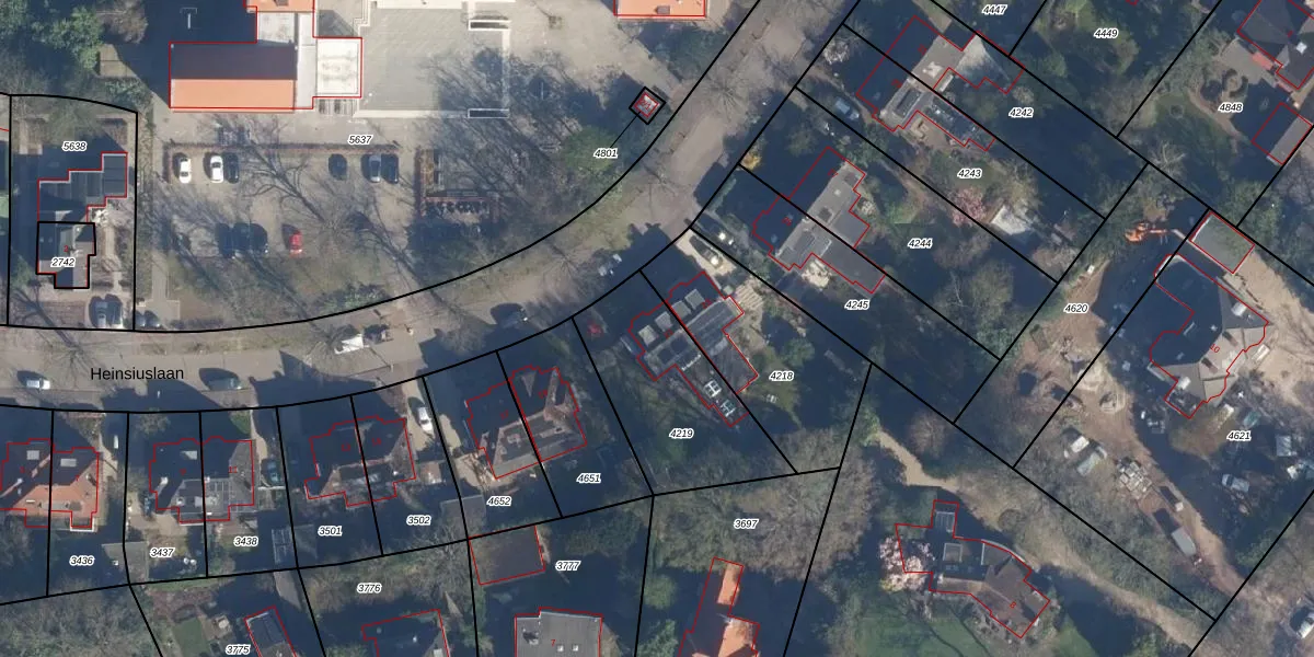 Het perceel waarop Heinsiuslaan 21 staat heeft een oppervlakte van 563 m². Dit is een groot perceel. De perceeloppervlakte wordt geregistreerd door het Kadaster. Gedetailleerde informatie over de maten van dit perceel kunt u vinden in het rapport Kadastrale kaart met maatvoering van Heinsiuslaan 21.