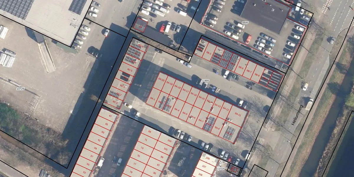 Het perceel waarop Heliumweg 6-A-18 staat heeft een oppervlakte van 4520 m². Dit is een zeer groot perceel. De perceeloppervlakte wordt geregistreerd door het Kadaster. Gedetailleerde informatie over de maten van dit perceel kunt u vinden in het rapport Kadastrale kaart met maatvoering van Heliumweg 6-A-18.