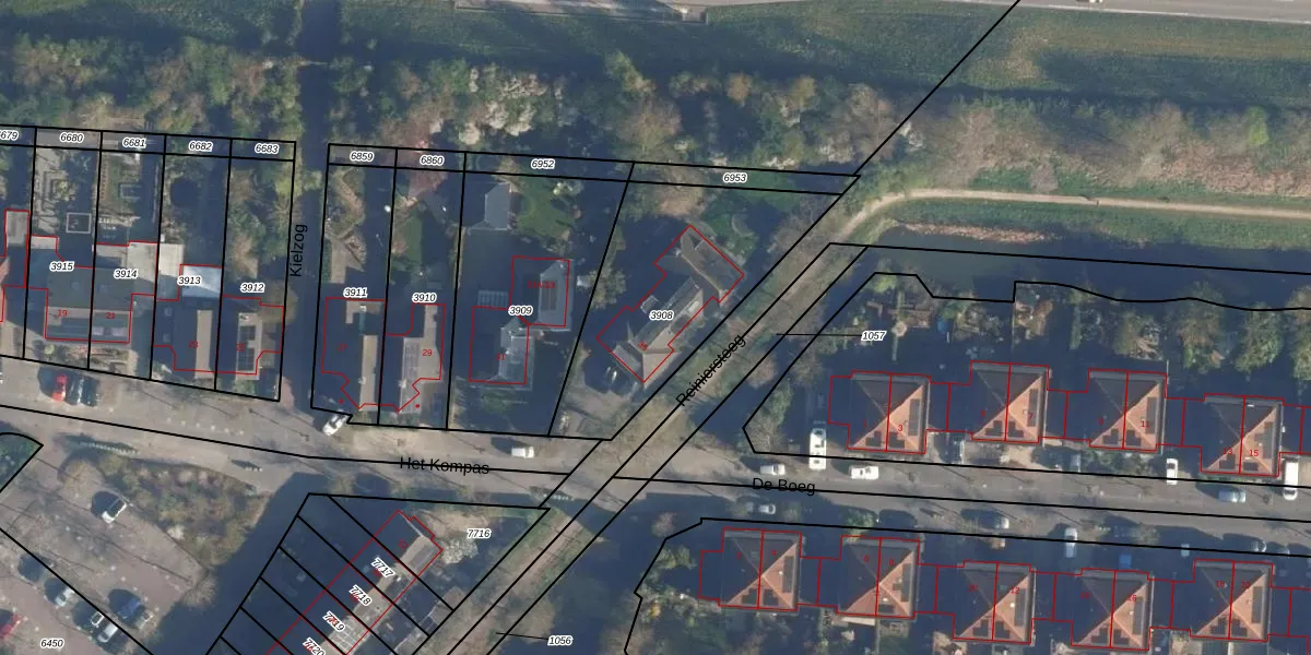Het perceel waarop Het Kompas 35 staat heeft een oppervlakte van 843 m². Dit is een groot perceel. De perceeloppervlakte wordt geregistreerd door het Kadaster. Gedetailleerde informatie over de maten van dit perceel kunt u vinden in het rapport Kadastrale kaart met maatvoering van Het Kompas 35.