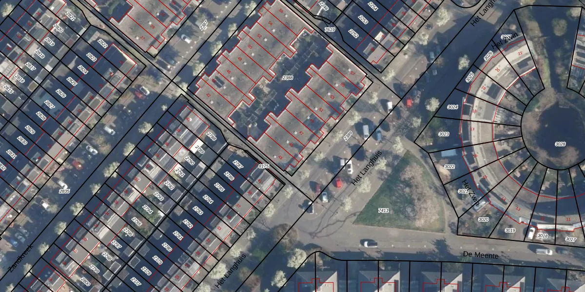 Het Langhuis 45 is gelegen op kadastraal perceel AMF00O2388. Deze kadastrale aanduiding is uniek en wordt gebruikt door het Kadaster om eigendomsrechten en andere zakelijke rechten vast te leggen. Het perceel maakt onderdeel uit van de kadastrale gemeente Amersfoort.