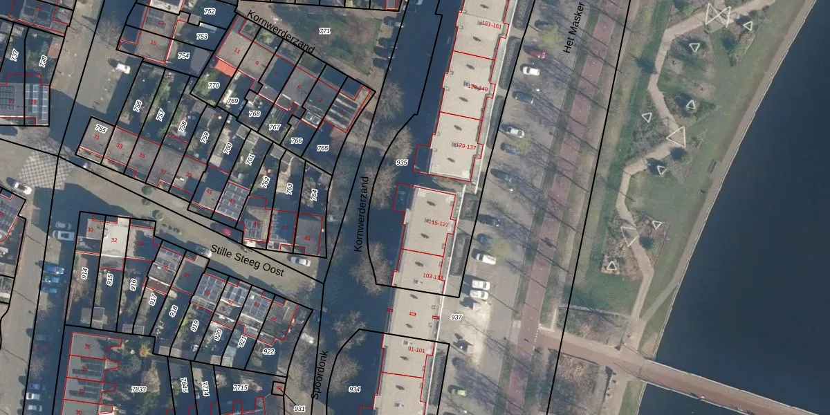 Het perceel waarop Het Masker 119 staat heeft een oppervlakte van 2385 m². Dit is een zeer groot perceel. De perceeloppervlakte wordt geregistreerd door het Kadaster. Gedetailleerde informatie over de maten van dit perceel kunt u vinden in het rapport Kadastrale kaart met maatvoering van Het Masker 119.