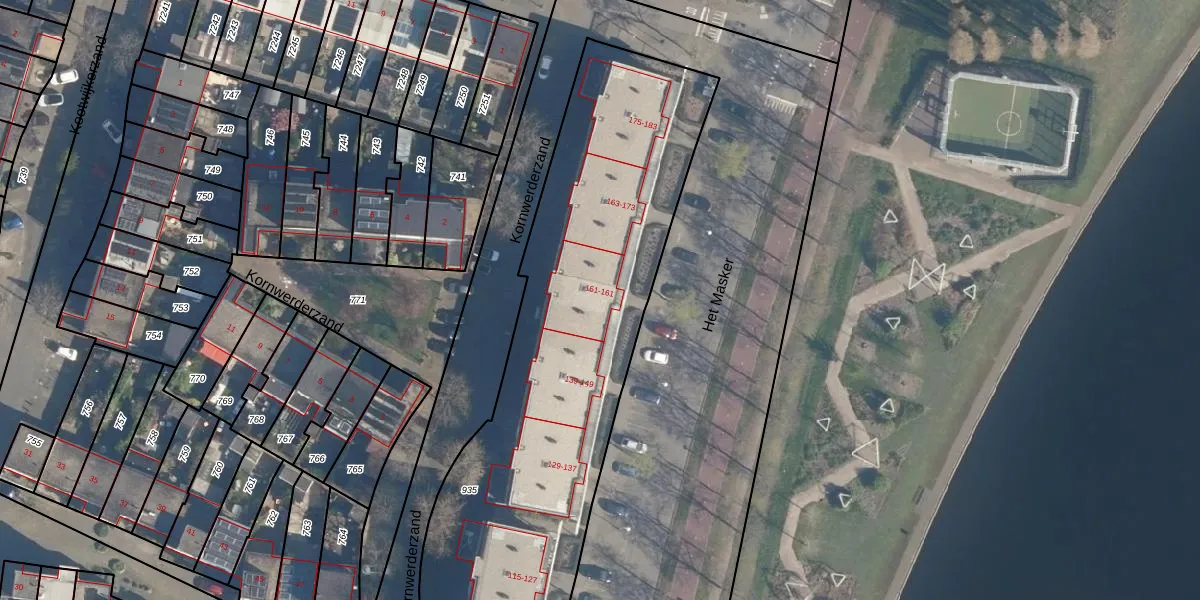 Het perceel waarop Het Masker 155 staat heeft een oppervlakte van 2385 m². Dit is een zeer groot perceel. De perceeloppervlakte wordt geregistreerd door het Kadaster. Gedetailleerde informatie over de maten van dit perceel kunt u vinden in het rapport Kadastrale kaart met maatvoering van Het Masker 155.