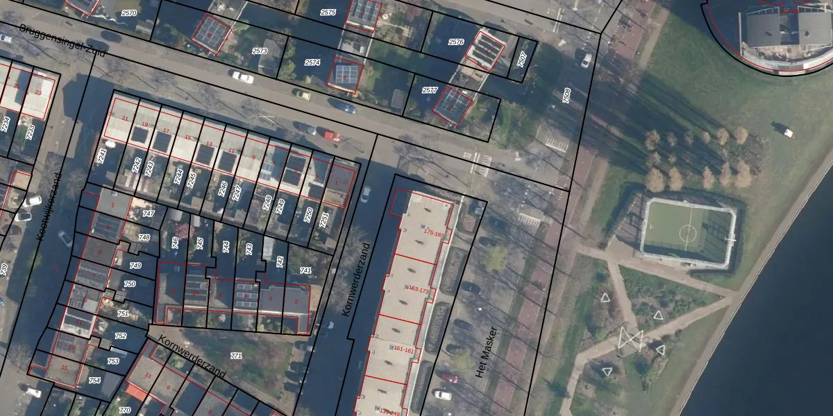 Het perceel waarop Het Masker 181 staat heeft een oppervlakte van 2385 m². Dit is een zeer groot perceel. De perceeloppervlakte wordt geregistreerd door het Kadaster. Gedetailleerde informatie over de maten van dit perceel kunt u vinden in het rapport Kadastrale kaart met maatvoering van Het Masker 181.