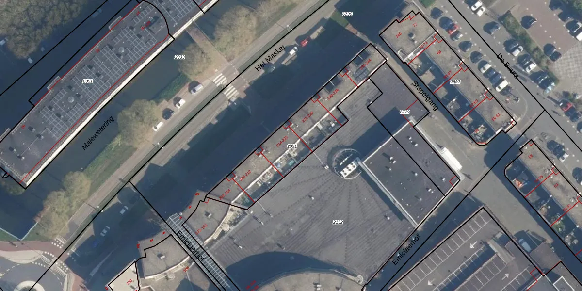 Het perceel waarop Het Masker 220 staat heeft een oppervlakte van 875 m². Dit is een groot perceel. De perceeloppervlakte wordt geregistreerd door het Kadaster. Gedetailleerde informatie over de maten van dit perceel kunt u vinden in het rapport Kadastrale kaart met maatvoering van Het Masker 220.