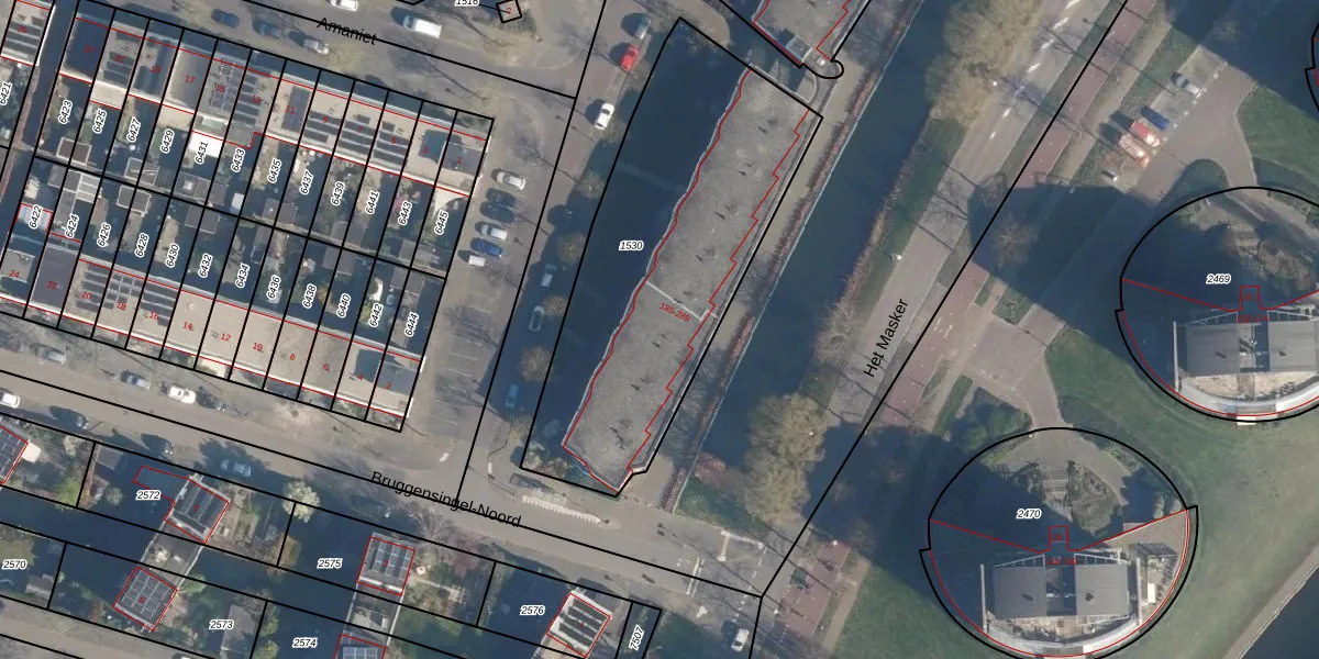Het perceel waarop Het Masker 229 staat heeft een oppervlakte van 1555 m². Dit is een zeer groot perceel. De perceeloppervlakte wordt geregistreerd door het Kadaster. Gedetailleerde informatie over de maten van dit perceel kunt u vinden in het rapport Kadastrale kaart met maatvoering van Het Masker 229.