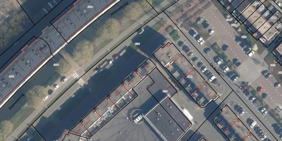 Het perceel waarop Het Masker 240 staat heeft een oppervlakte van 875 m². Dit is een groot perceel. De perceeloppervlakte wordt geregistreerd door het Kadaster. Gedetailleerde informatie over de maten van dit perceel kunt u vinden in het rapport Kadastrale kaart met maatvoering van Het Masker 240.
