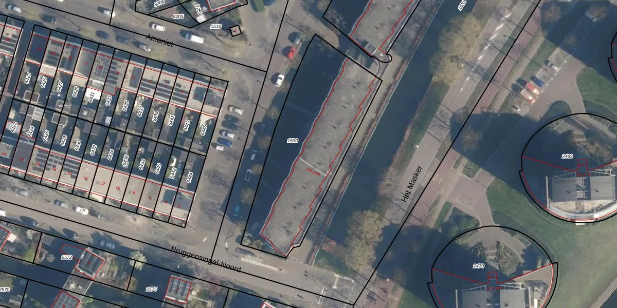 Het perceel waarop Het Masker 281 staat heeft een oppervlakte van 1555 m². Dit is een zeer groot perceel. De perceeloppervlakte wordt geregistreerd door het Kadaster. Gedetailleerde informatie over de maten van dit perceel kunt u vinden in het rapport Kadastrale kaart met maatvoering van Het Masker 281.