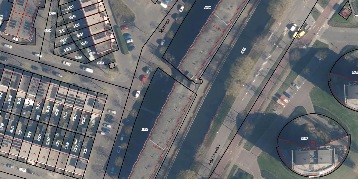 Het perceel waarop Het Masker 289 staat heeft een oppervlakte van 1555 m². Dit is een zeer groot perceel. De perceeloppervlakte wordt geregistreerd door het Kadaster. Gedetailleerde informatie over de maten van dit perceel kunt u vinden in het rapport Kadastrale kaart met maatvoering van Het Masker 289.