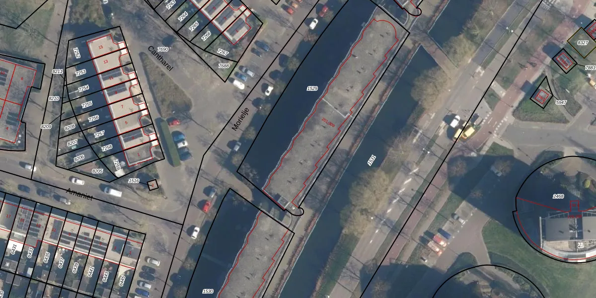 Het perceel waarop het adres ligt is AMF00-O-1529. De afkorting 'AMF00' staat voor kadastrale gemeente Amersfoort. De oppervlakte van het perceel is 1865 m². Dat is groter dan gemiddeld in Amersfoort, waar de gemiddelde perceeloppervlakte op 960,19 m² ligt. Het kleinste perceel in de kadastrale gemeente is 0 m² groot. De grootste perceeloppervlakte is 1,12 km². Op het perceel zijn 27 adressen aanwezig. In de Basisregistratie Kadaster (BRK) werden de grenzen van het perceel geregistreerd op 19-09-1997.