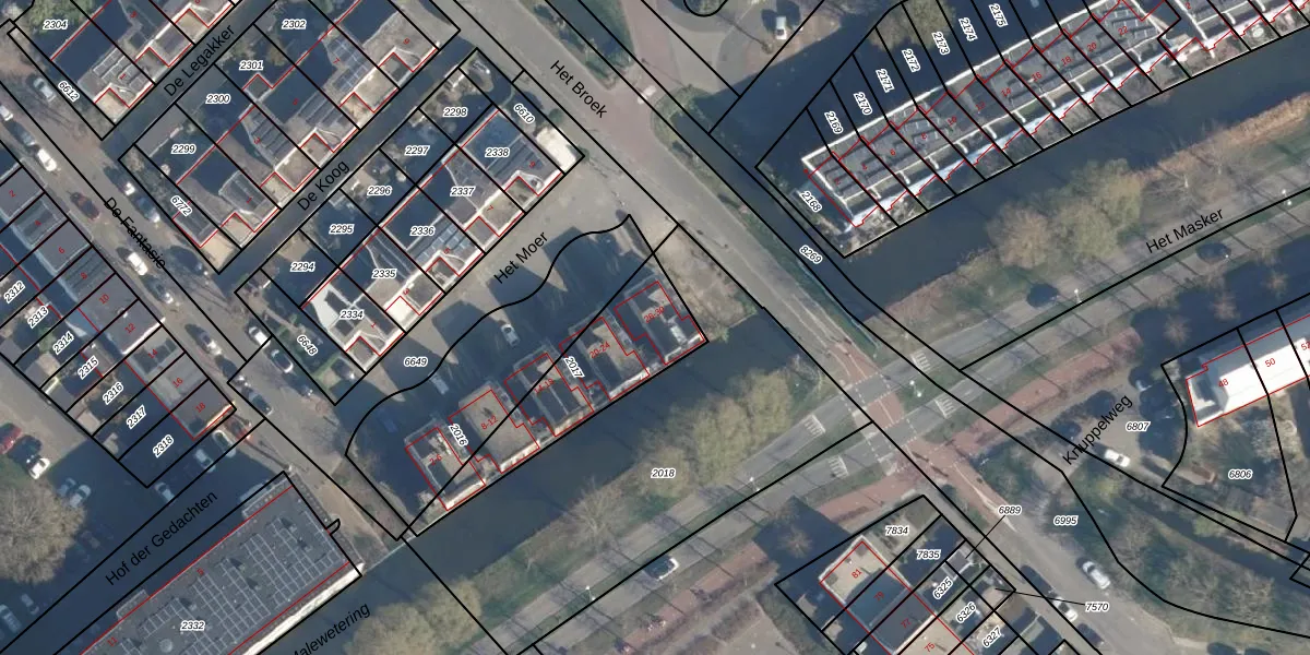 Het perceel waarop Het Moer 28 staat heeft een oppervlakte van 465 m². Dit is een groot perceel. De perceeloppervlakte wordt geregistreerd door het Kadaster. Gedetailleerde informatie over de maten van dit perceel kunt u vinden in het rapport Kadastrale kaart met maatvoering van Het Moer 28.