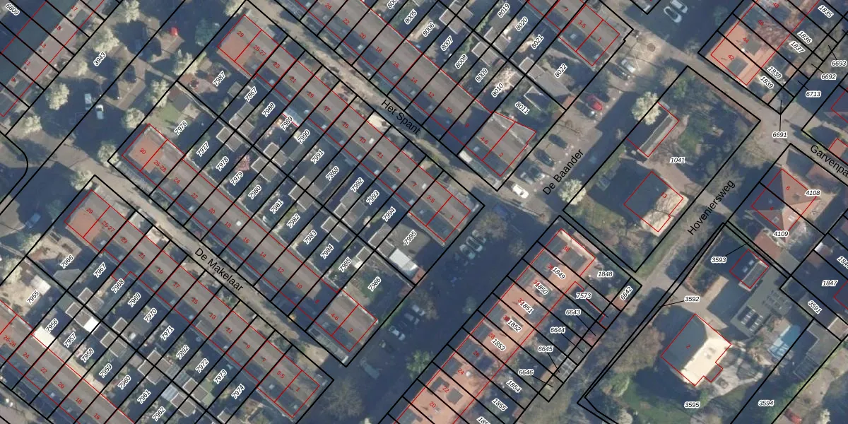 Het perceel waarop Het Spant 5 staat heeft een oppervlakte van 319 m². Dit is een groot perceel. De perceeloppervlakte wordt geregistreerd door het Kadaster. Gedetailleerde informatie over de maten van dit perceel kunt u vinden in het rapport Kadastrale kaart met maatvoering van Het Spant 5.