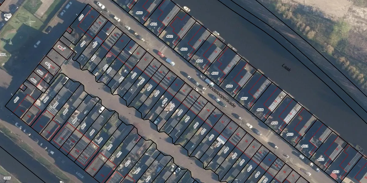 Hindeloopenkade 42 is gelegen op kadastraal perceel HLD02B4527. Deze kadastrale aanduiding is uniek en wordt gebruikt door het Kadaster om eigendomsrechten en andere zakelijke rechten vast te leggen. Het perceel maakt onderdeel uit van de kadastrale gemeente Hoogland.