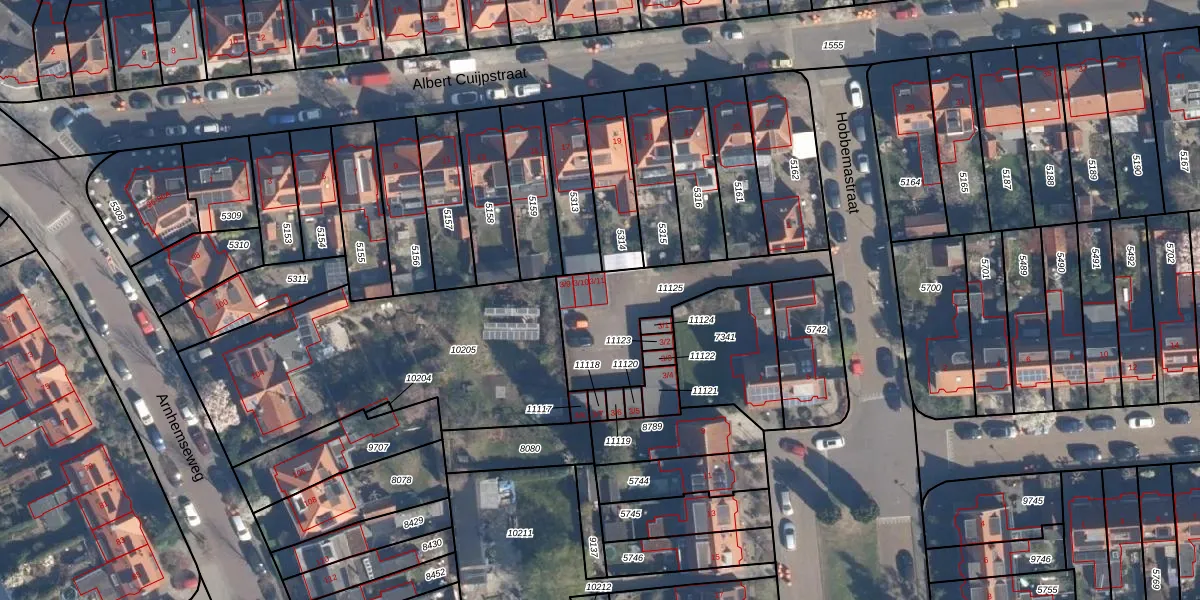 Het perceel waarop Hobbemastraat 3-11 staat heeft een oppervlakte van 437 m². Dit is een groot perceel. De perceeloppervlakte wordt geregistreerd door het Kadaster. Gedetailleerde informatie over de maten van dit perceel kunt u vinden in het rapport Kadastrale kaart met maatvoering van Hobbemastraat 3-11.