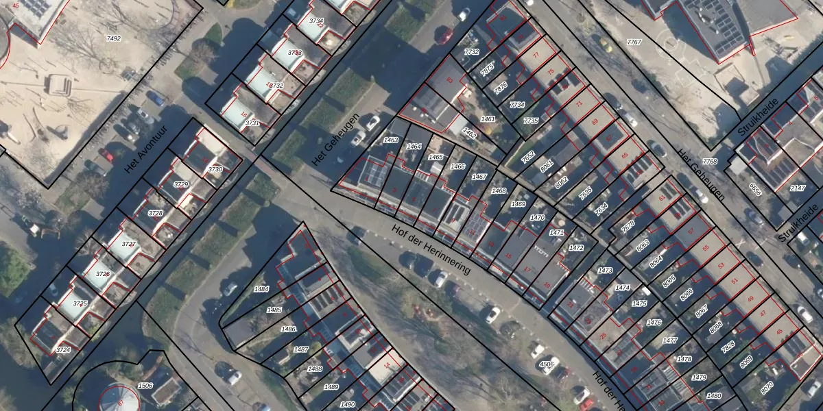 Hof der Herinnering 5 is gelegen op kadastraal perceel AMF00O1465. Deze kadastrale aanduiding is uniek en wordt gebruikt door het Kadaster om eigendomsrechten en andere zakelijke rechten vast te leggen. Het perceel maakt onderdeel uit van de kadastrale gemeente Amersfoort.