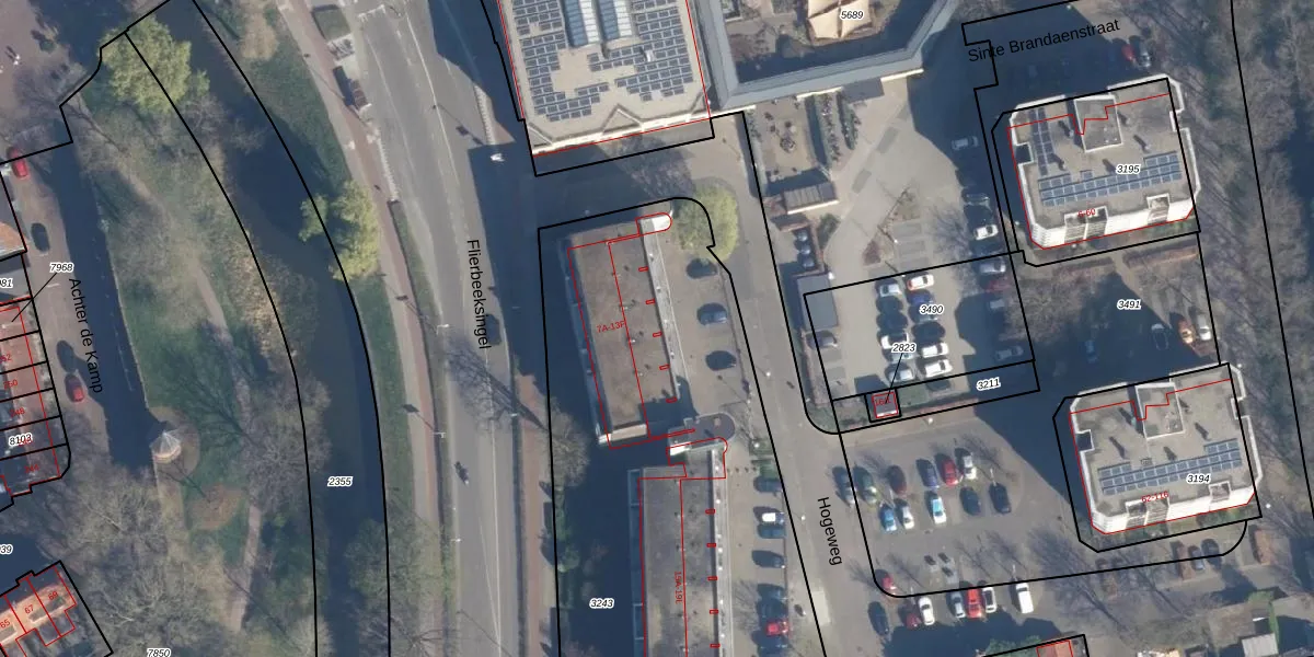 Hogeweg 11-B is gelegen op kadastraal perceel AMF00G3243. Deze kadastrale aanduiding is uniek en wordt gebruikt door het Kadaster om eigendomsrechten en andere zakelijke rechten vast te leggen. Het perceel maakt onderdeel uit van de kadastrale gemeente Amersfoort.