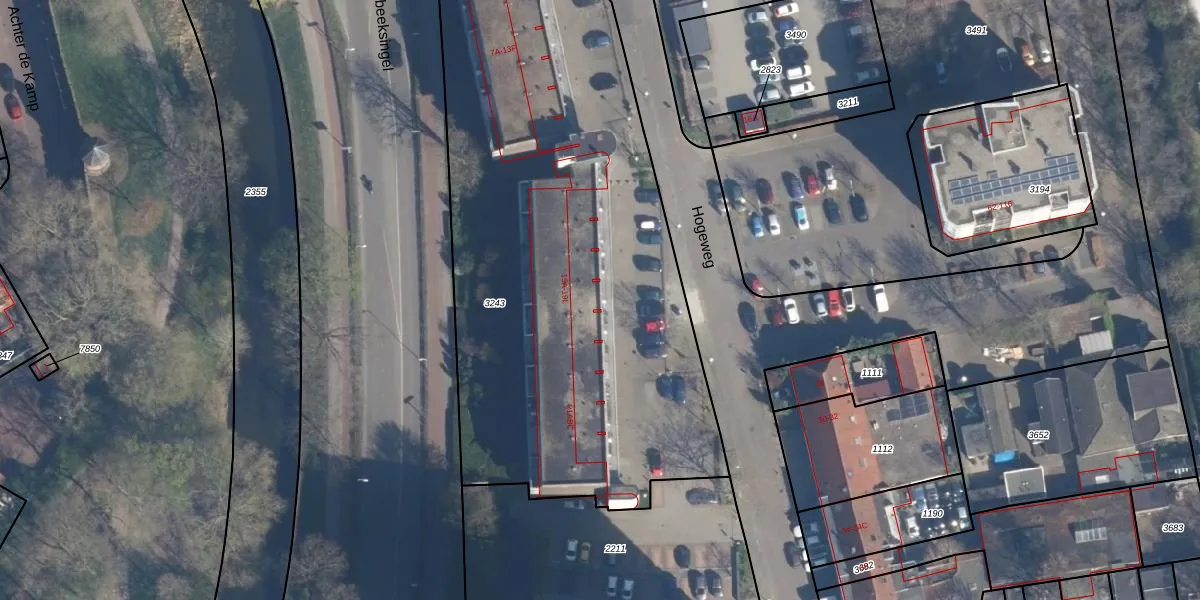 Hogeweg 15-A is gelegen op kadastraal perceel AMF00G3243. Deze kadastrale aanduiding is uniek en wordt gebruikt door het Kadaster om eigendomsrechten en andere zakelijke rechten vast te leggen. Het perceel maakt onderdeel uit van de kadastrale gemeente Amersfoort.
