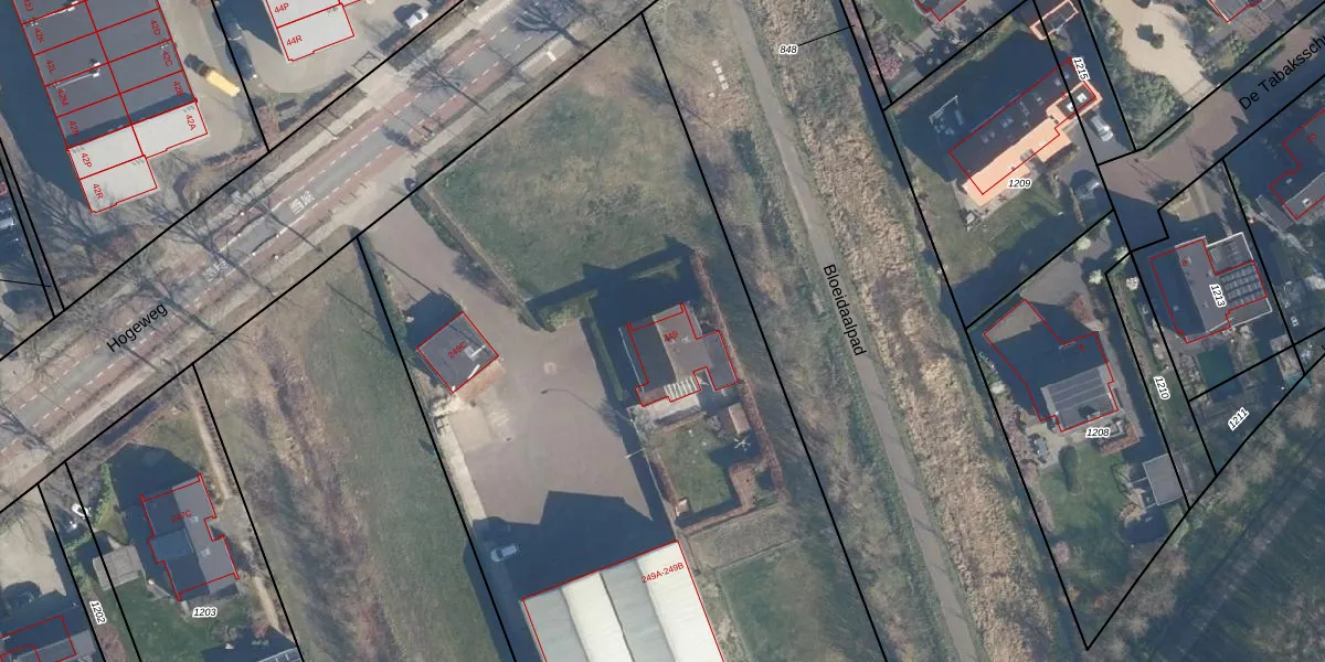 Het perceel waarop Hogeweg 249 staat heeft een oppervlakte van 7580 m². Dit is een zeer groot perceel. De perceeloppervlakte wordt geregistreerd door het Kadaster. Gedetailleerde informatie over de maten van dit perceel kunt u vinden in het rapport Kadastrale kaart met maatvoering van Hogeweg 249.