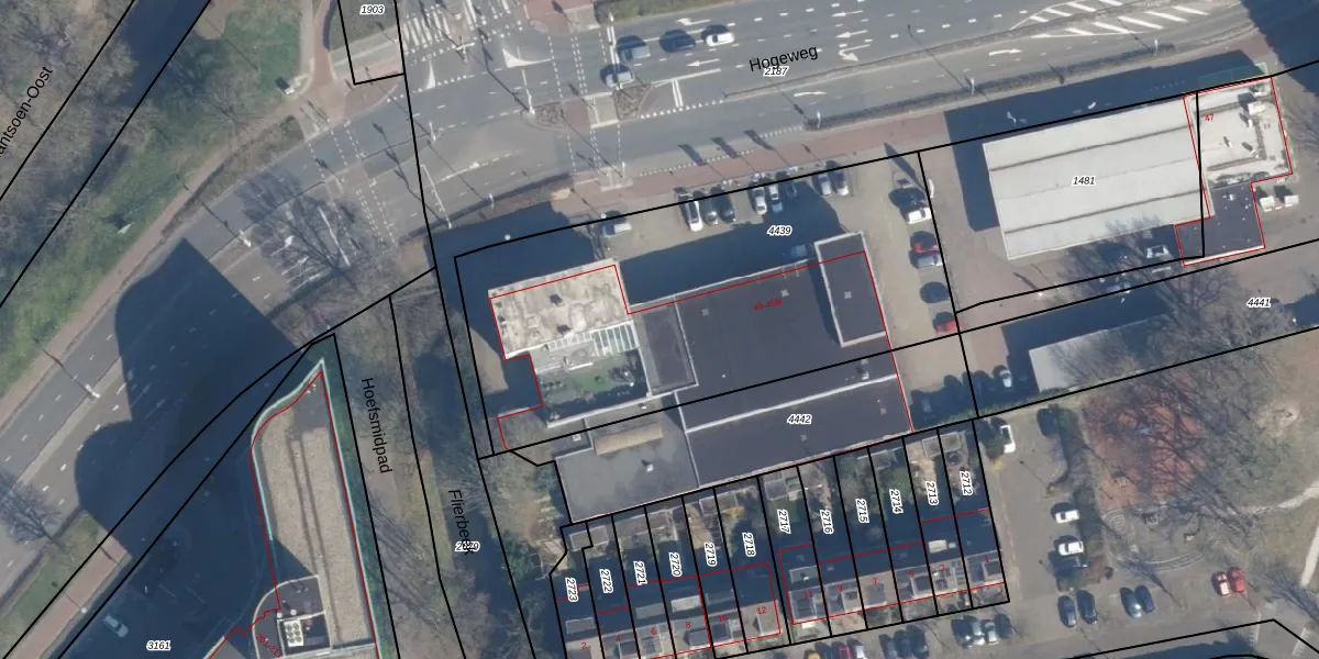 Hogeweg 45-A is gelegen op kadastraal perceel AMF00G4439. Deze kadastrale aanduiding is uniek en wordt gebruikt door het Kadaster om eigendomsrechten en andere zakelijke rechten vast te leggen. Het perceel maakt onderdeel uit van de kadastrale gemeente Amersfoort.