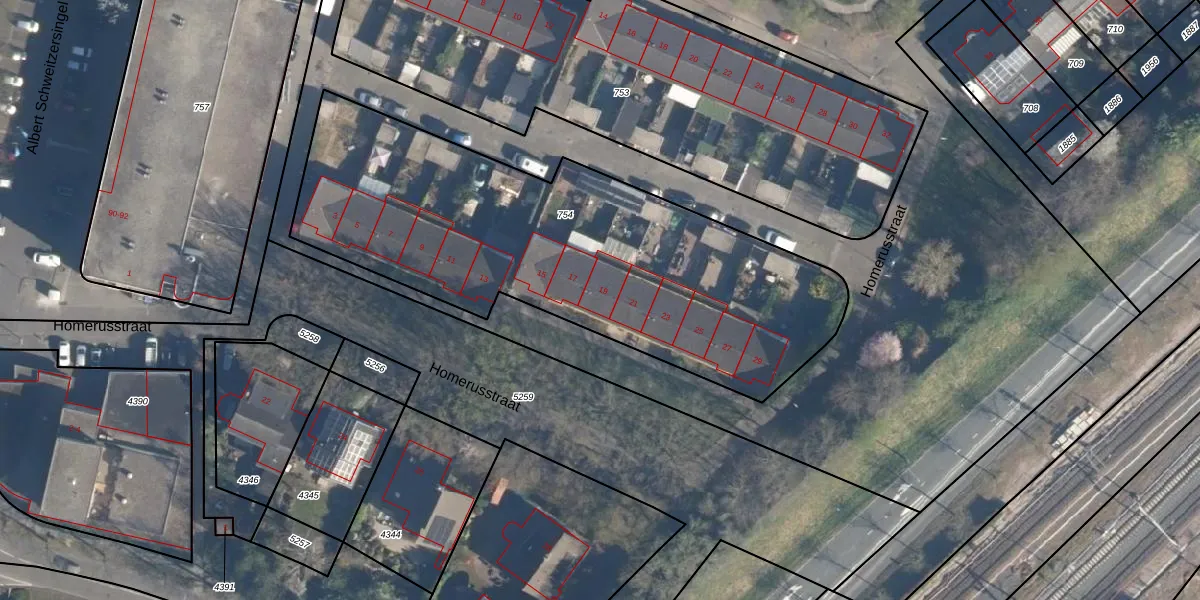 Het perceel waarop Homerusstraat 19 staat heeft een oppervlakte van 2220 m². Dit is een zeer groot perceel. De perceeloppervlakte wordt geregistreerd door het Kadaster. Gedetailleerde informatie over de maten van dit perceel kunt u vinden in het rapport Kadastrale kaart met maatvoering van Homerusstraat 19.