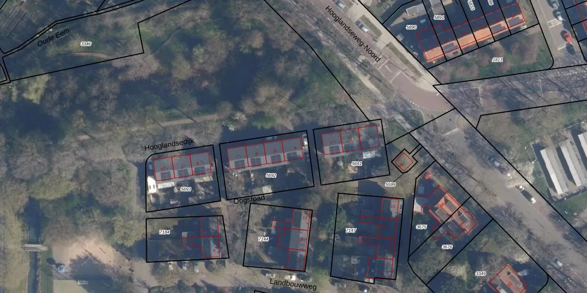 Hooglandsedijk 4 is gelegen op kadastraal perceel AMF00A5692. Deze kadastrale aanduiding is uniek en wordt gebruikt door het Kadaster om eigendomsrechten en andere zakelijke rechten vast te leggen. Het perceel maakt onderdeel uit van de kadastrale gemeente Amersfoort.