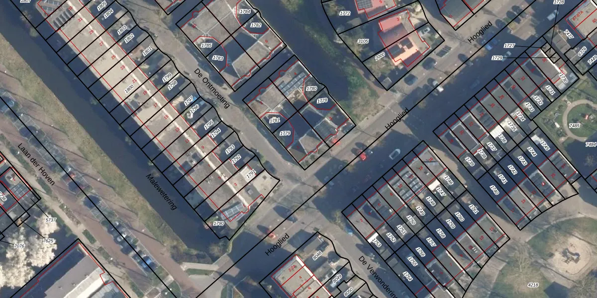 Het perceel waarop Hooglied 1 staat heeft een oppervlakte van 190 m². Dit is een middelgroot perceel. De perceeloppervlakte wordt geregistreerd door het Kadaster. Gedetailleerde informatie over de maten van dit perceel kunt u vinden in het rapport Kadastrale kaart met maatvoering van Hooglied 1.