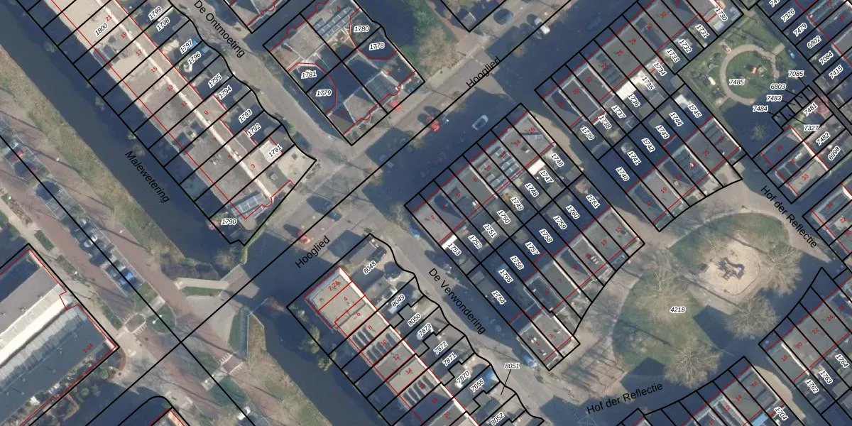 Het perceel waarop Hooglied 2 staat heeft een oppervlakte van 105 m². Dit is een middelgroot perceel. De perceeloppervlakte wordt geregistreerd door het Kadaster. Gedetailleerde informatie over de maten van dit perceel kunt u vinden in het rapport Kadastrale kaart met maatvoering van Hooglied 2.