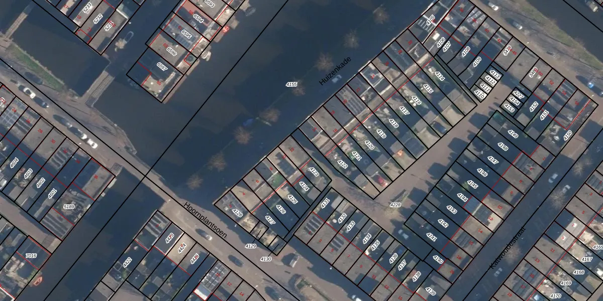 Huizenkade 12 is gelegen op kadastraal perceel HLD02B4123. Deze kadastrale aanduiding is uniek en wordt gebruikt door het Kadaster om eigendomsrechten en andere zakelijke rechten vast te leggen. Het perceel maakt onderdeel uit van de kadastrale gemeente Hoogland.