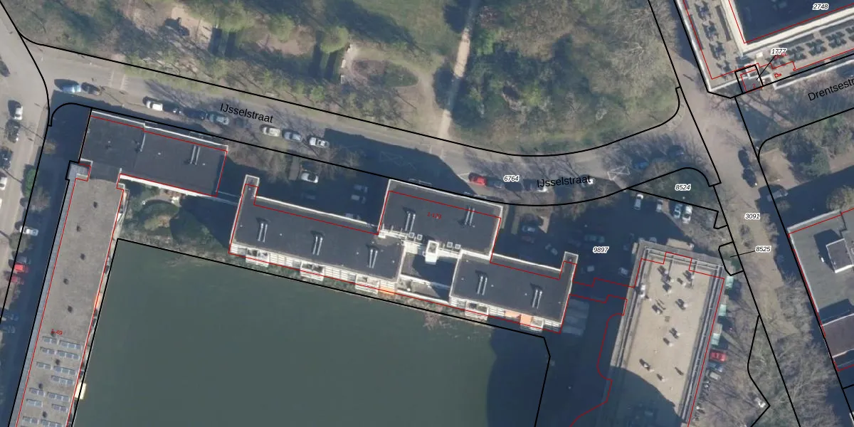 Het perceel waarop IJsselstraat 43 staat heeft een oppervlakte van 9421 m². Dit is een zeer groot perceel. De perceeloppervlakte wordt geregistreerd door het Kadaster. Gedetailleerde informatie over de maten van dit perceel kunt u vinden in het rapport Kadastrale kaart met maatvoering van IJsselstraat 43.