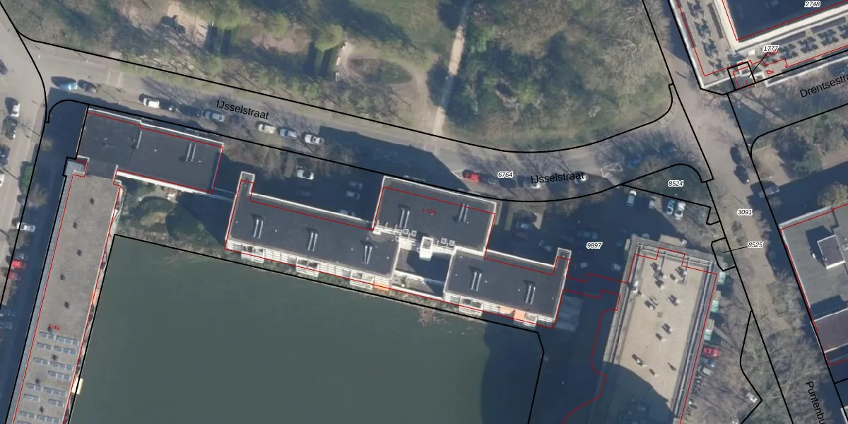 Het perceel waarop IJsselstraat 65 staat heeft een oppervlakte van 9421 m². Dit is een zeer groot perceel. De perceeloppervlakte wordt geregistreerd door het Kadaster. Gedetailleerde informatie over de maten van dit perceel kunt u vinden in het rapport Kadastrale kaart met maatvoering van IJsselstraat 65.