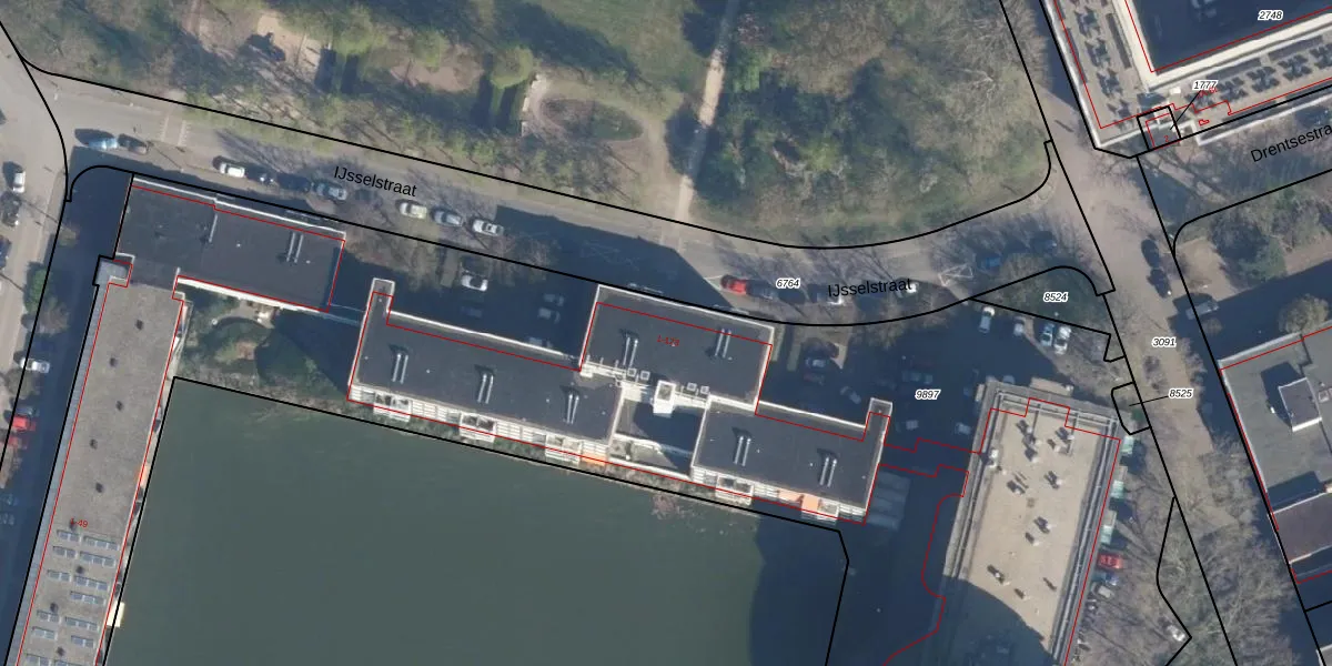 Het perceel waarop IJsselstraat 7 staat heeft een oppervlakte van 9421 m². Dit is een zeer groot perceel. De perceeloppervlakte wordt geregistreerd door het Kadaster. Gedetailleerde informatie over de maten van dit perceel kunt u vinden in het rapport Kadastrale kaart met maatvoering van IJsselstraat 7.