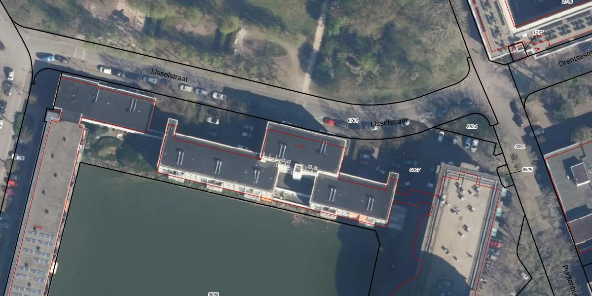 Het perceel waarop IJsselstraat 85 staat heeft een oppervlakte van 9421 m². Dit is een zeer groot perceel. De perceeloppervlakte wordt geregistreerd door het Kadaster. Gedetailleerde informatie over de maten van dit perceel kunt u vinden in het rapport Kadastrale kaart met maatvoering van IJsselstraat 85.