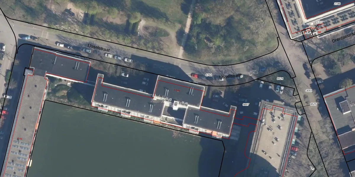 Het perceel waarop IJsselstraat 9 staat heeft een oppervlakte van 9421 m². Dit is een zeer groot perceel. De perceeloppervlakte wordt geregistreerd door het Kadaster. Gedetailleerde informatie over de maten van dit perceel kunt u vinden in het rapport Kadastrale kaart met maatvoering van IJsselstraat 9.