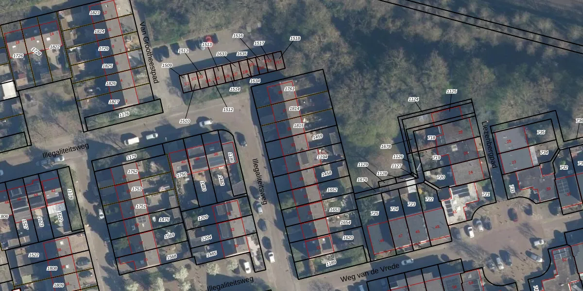 Het perceel waarop Illegaliteitsweg 33 staat heeft een oppervlakte van 155 m². Dit is een middelgroot perceel. De perceeloppervlakte wordt geregistreerd door het Kadaster. Gedetailleerde informatie over de maten van dit perceel kunt u vinden in het rapport Kadastrale kaart met maatvoering van Illegaliteitsweg 33.