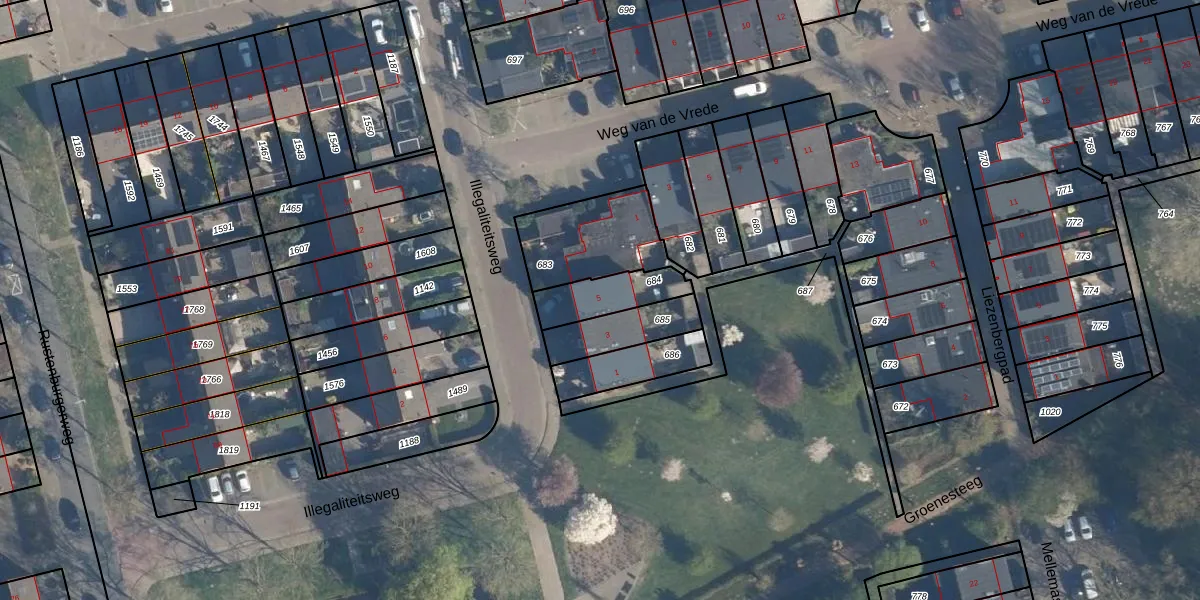 Illegaliteitsweg 5 is gelegen op kadastraal perceel AMF00L684. Deze kadastrale aanduiding is uniek en wordt gebruikt door het Kadaster om eigendomsrechten en andere zakelijke rechten vast te leggen. Het perceel maakt onderdeel uit van de kadastrale gemeente Amersfoort.