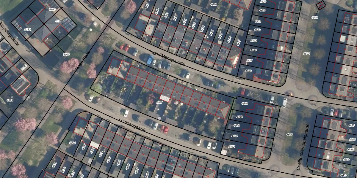 Ingrid Mariegaarde 14 is gelegen op kadastraal perceel AMF00O4447. Deze kadastrale aanduiding is uniek en wordt gebruikt door het Kadaster om eigendomsrechten en andere zakelijke rechten vast te leggen. Het perceel maakt onderdeel uit van de kadastrale gemeente Amersfoort.