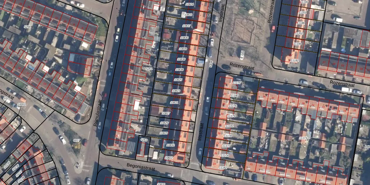 Gebruik de zoekbalk of klik op een perceel voor informatie over de adressen binnen dit perceel.