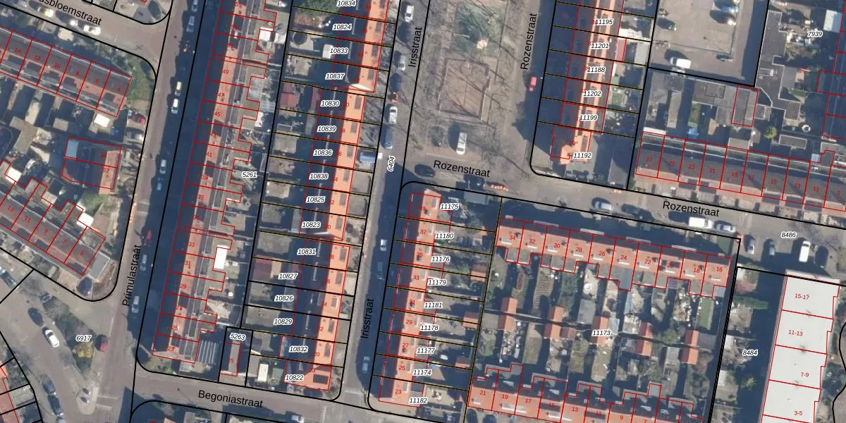 Het perceel waarop Irisstraat 39 staat heeft een oppervlakte van 205 m². Dit is een middelgroot perceel. De perceeloppervlakte wordt geregistreerd door het Kadaster. Gedetailleerde informatie over de maten van dit perceel kunt u vinden in het rapport Kadastrale kaart met maatvoering van Irisstraat 39.