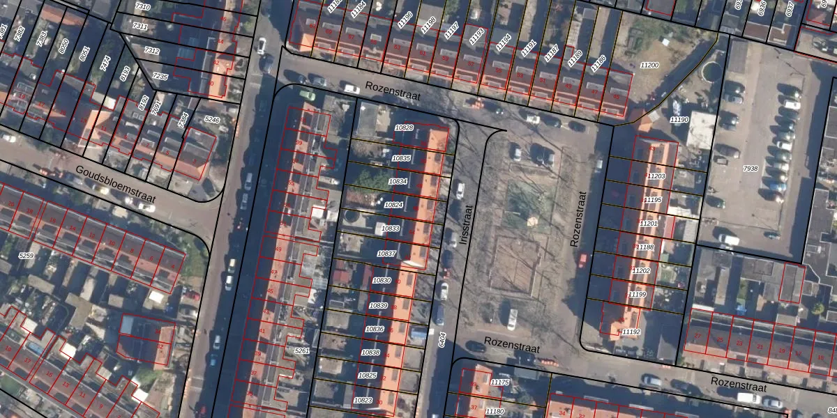 Gebruik de zoekbalk of klik op een perceel voor informatie over de adressen binnen dit perceel.