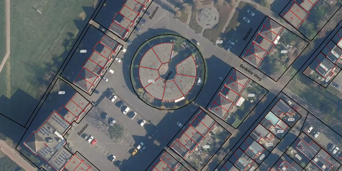 Het perceel waarop Isolotto 3 staat heeft een oppervlakte van 1495 m². Dit is een zeer groot perceel. De perceeloppervlakte wordt geregistreerd door het Kadaster. Gedetailleerde informatie over de maten van dit perceel kunt u vinden in het rapport Kadastrale kaart met maatvoering van Isolotto 3.