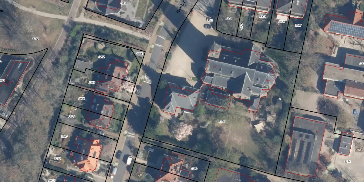Het perceel waarop Jacob Catslaan 28-B staat heeft een oppervlakte van 5210 m². Dit is een zeer groot perceel. De perceeloppervlakte wordt geregistreerd door het Kadaster. Gedetailleerde informatie over de maten van dit perceel kunt u vinden in het rapport Kadastrale kaart met maatvoering van Jacob Catslaan 28-B.