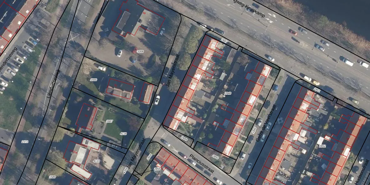 Jan Mayenstraat 7 is gelegen op kadastraal perceel AMF00G2848. Deze kadastrale aanduiding is uniek en wordt gebruikt door het Kadaster om eigendomsrechten en andere zakelijke rechten vast te leggen. Het perceel maakt onderdeel uit van de kadastrale gemeente Amersfoort.