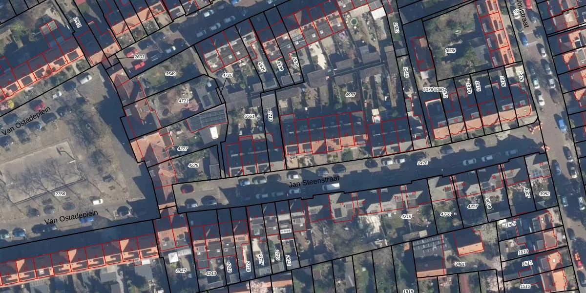 Het perceel waarop Jan Steenstraat 10 staat heeft een oppervlakte van 2296 m². Dit is een zeer groot perceel. De perceeloppervlakte wordt geregistreerd door het Kadaster. Gedetailleerde informatie over de maten van dit perceel kunt u vinden in het rapport Kadastrale kaart met maatvoering van Jan Steenstraat 10.