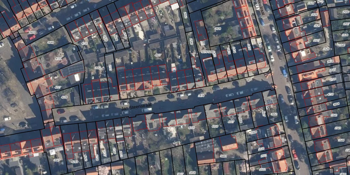 Het perceel waarop Jan Steenstraat 22 staat heeft een oppervlakte van 2296 m². Dit is een zeer groot perceel. De perceeloppervlakte wordt geregistreerd door het Kadaster. Gedetailleerde informatie over de maten van dit perceel kunt u vinden in het rapport Kadastrale kaart met maatvoering van Jan Steenstraat 22.