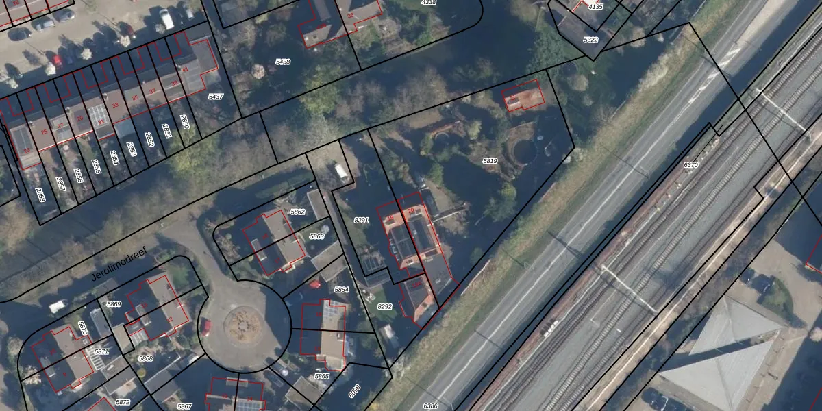 Het perceel waarop Jerolimodreef 20 staat heeft een oppervlakte van 1534 m². Dit is een zeer groot perceel. De perceeloppervlakte wordt geregistreerd door het Kadaster. Gedetailleerde informatie over de maten van dit perceel kunt u vinden in het rapport Kadastrale kaart met maatvoering van Jerolimodreef 20.