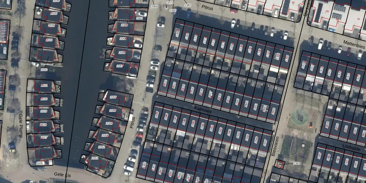 Gebruik de zoekbalk of klik op een perceel voor informatie over de adressen binnen dit perceel.