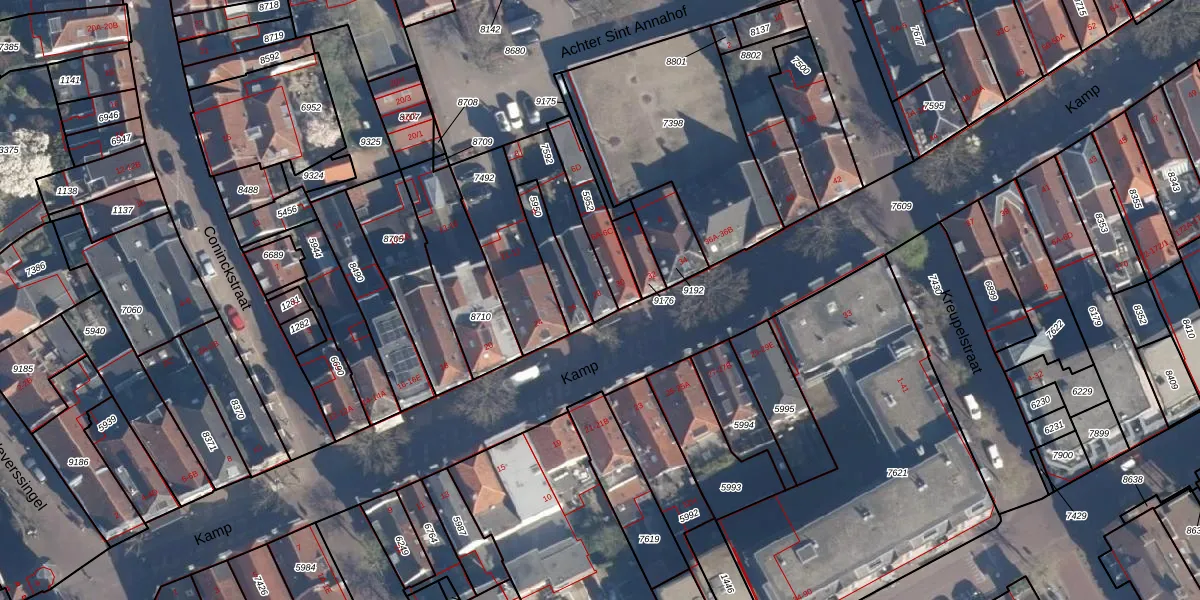 Het perceel waarop Kamp 28 staat heeft een oppervlakte van 185 m². Dit is een middelgroot perceel. De perceeloppervlakte wordt geregistreerd door het Kadaster. Gedetailleerde informatie over de maten van dit perceel kunt u vinden in het rapport Kadastrale kaart met maatvoering van Kamp 28.