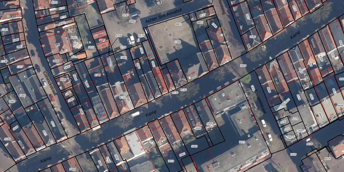 Het perceel waarop Kamp 32 staat heeft een oppervlakte van 61 m². Dit is een klein perceel. De perceeloppervlakte wordt geregistreerd door het Kadaster. Gedetailleerde informatie over de maten van dit perceel kunt u vinden in het rapport Kadastrale kaart met maatvoering van Kamp 32.