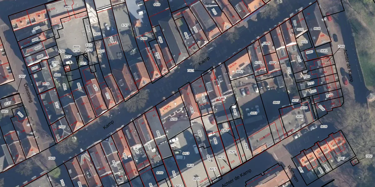 Het perceel waarop Kamp 57 staat heeft een oppervlakte van 120 m². Dit is een middelgroot perceel. De perceeloppervlakte wordt geregistreerd door het Kadaster. Gedetailleerde informatie over de maten van dit perceel kunt u vinden in het rapport Kadastrale kaart met maatvoering van Kamp 57.